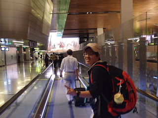 カタール,ドーハ空港にて。一緒に参加した大学院生は,はじめての海外渡航でした。